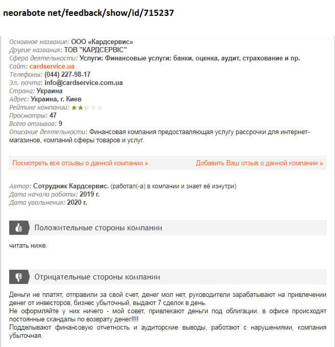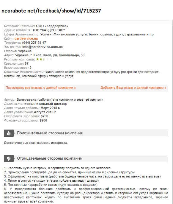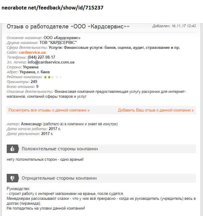 - Кроме ужасных условий работы в шараге CardService Ua, еще есть не компетенция сотрудников!