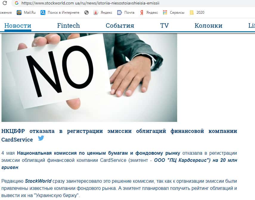 - Финансово-кредитное учреждение CardService Ua не смогло зарегистрировать эмиссию облигаций!