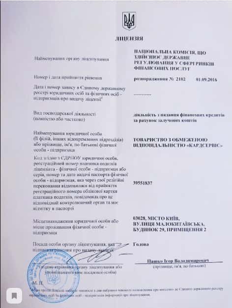 На своем официальном сайте представители конторы Кард Сервис выложили полный пакет имеющихся документов, в том числе и лицензию! В том что это настоящая лицензия сомнений нет, но от является ли она гарантией полной безопасности клиента - надо еще доказать! Ведь у конторы Кард Сервис возникли проблемы с НКЦБФР, которые отказали им в регистрации!!!