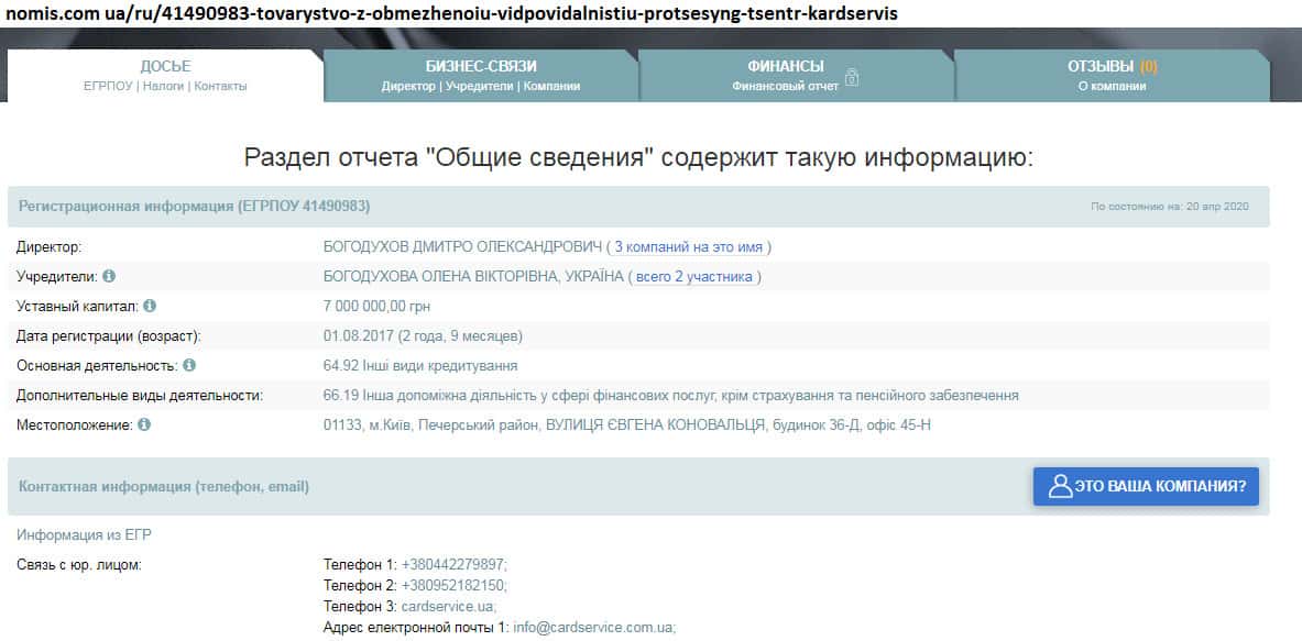 Из официальных источников известны имена руководящих должностей шараги CardService Ua! Ключевые лица это — руководитель Богодухов Дмитрий Александрович, а также учредитель конторы Богодухова Алена Викторовна и по совместительству его супруга. Известно, что все учредители абсолютно не компетентны в финансовой сфере и назначены по родственным узам!