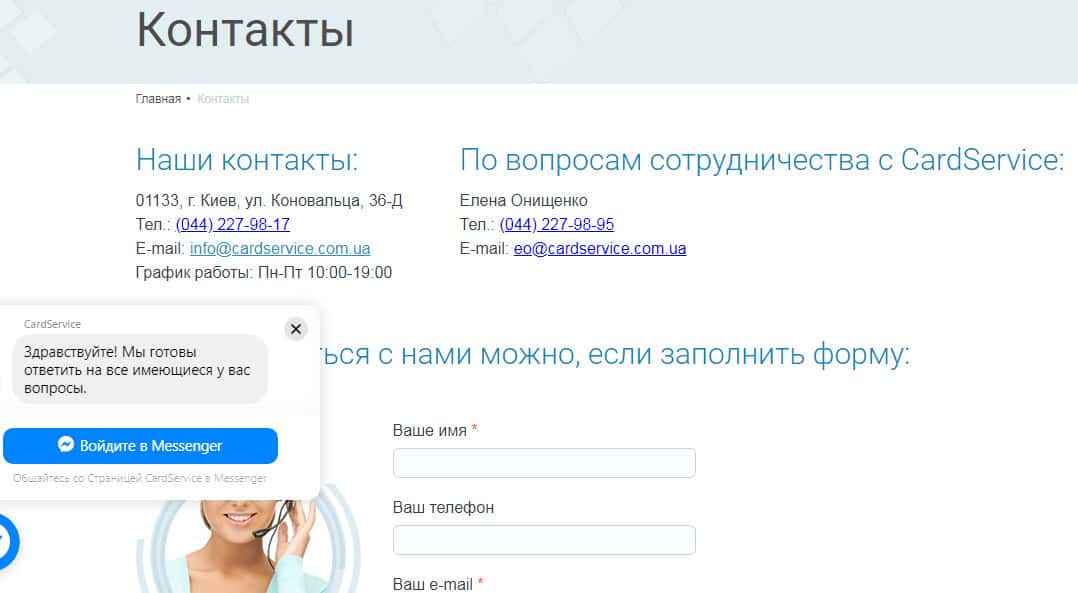 На официальном ресурсе мошенников Кард Сервис указана следующая контактная информация, по которой с ними можно связаться (для клиентов):