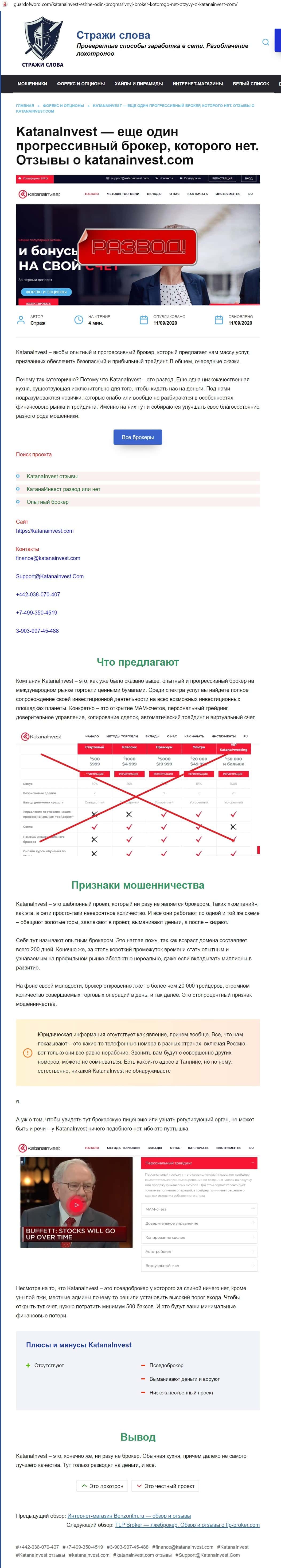 - Обзорные статьи о псевдоброкере Катана Инвест