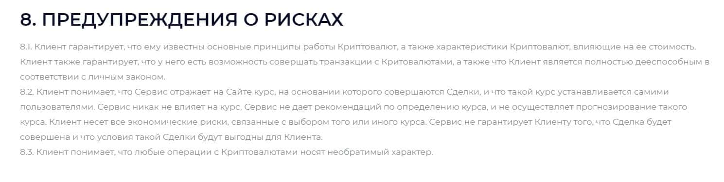 В разделе 8 контора KatanaInvest предупреждает клиента о том, что трейдинг связан с высокими рисками, что должен понимать пользователь.