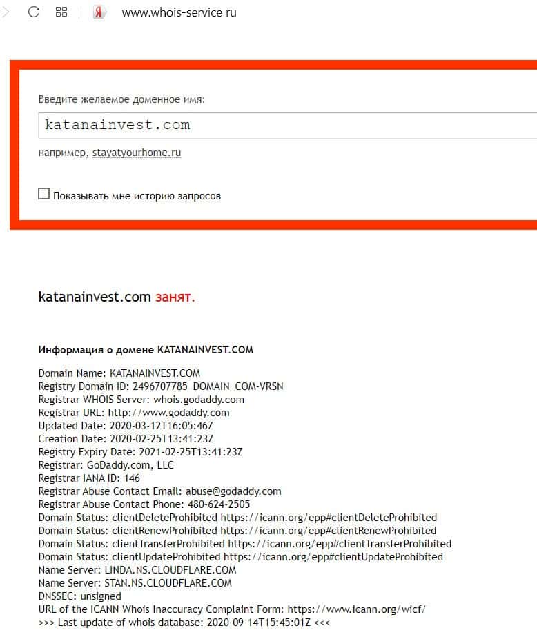 - Кому принадлежит доменное имя сайта katanainvest com?