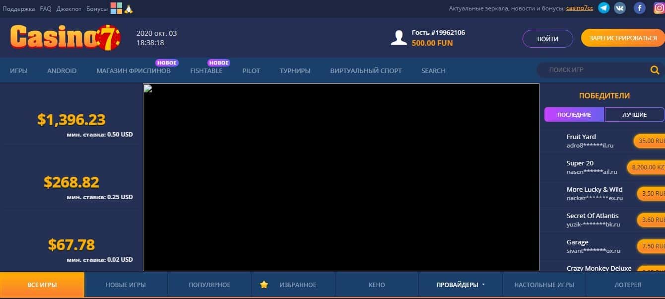 Как и множество подобных казино лохотрон Casino7 предлагает своим игрокам поиграть на якобы максимально новых и выигрышных слотах. которые вы не найдёте нигде.