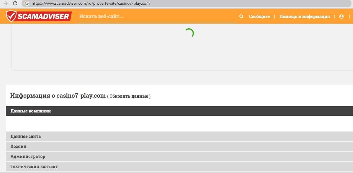 По данным портала scamadviser com данный интернет-ресурс аферистов Казино 7 не располагает особым доверием среди пользователей данного ресурса и посоветовать они его не могут.