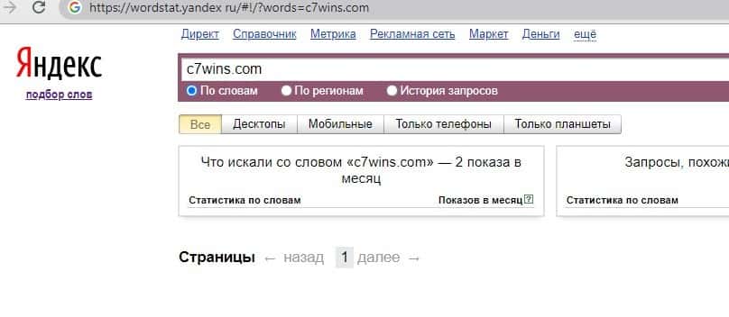 У запроса по бренду "c7wins.com" всё печально, так как данный запрос вообще не пользуется популярностью среди пользователей данного ресурса и доверия у них не вызывает.
