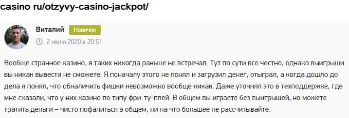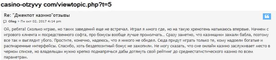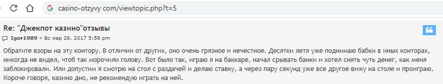 Отзывы о мошенниках Казино Джекпот на просторах интернета