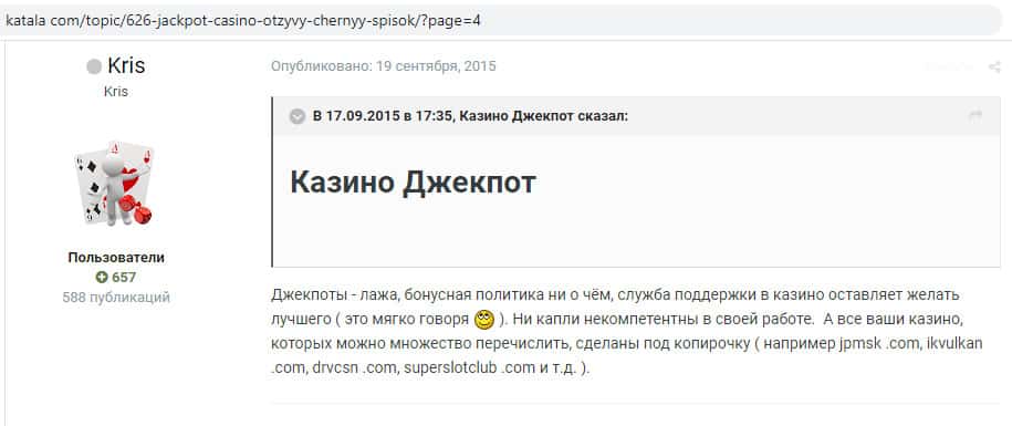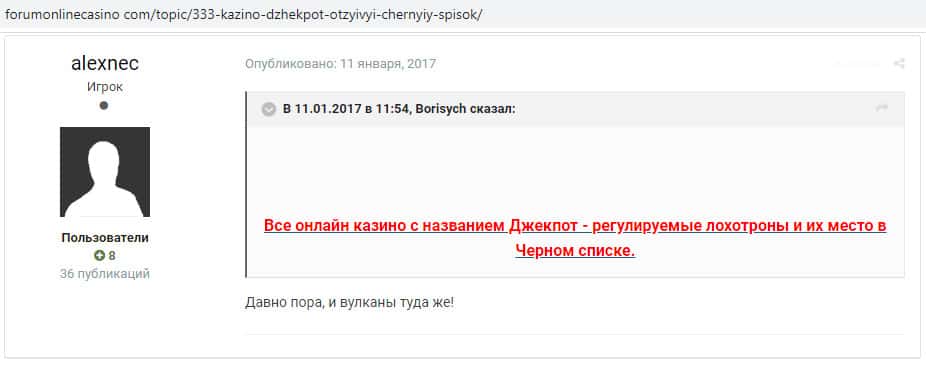 - Информация о мошенниках Казино Джекпот на просторах сети