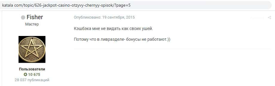 - Жулики CasinoJackpot разводят людей с кэшбэком