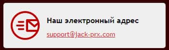 Также связаться с жуликами CasinoJackpot можно по адресу электронной почты, который тоже указан у них на сайте, а именно: