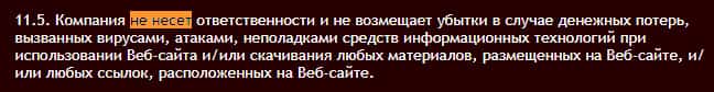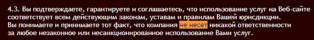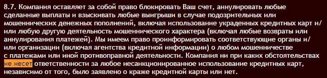Также жулики Казино Джекпот не отвечают за ущерб, который вы несете, если вашими данными воспользуются третьи лица. Тоже очень хитрый пункт.