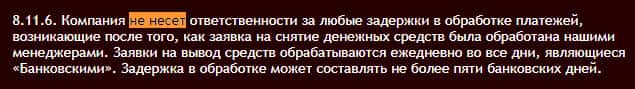 Самый интересный пункт у Казино Джекпот - это то, что они не несут никакой ответственности, если будут задержки в обработке платежей. Очень удобно.