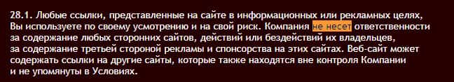 Ну и на закуску, жулики Казино Джекпот не несут ответственности за использование сторонних сайтов и информации на них.