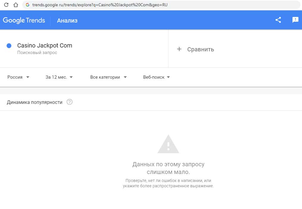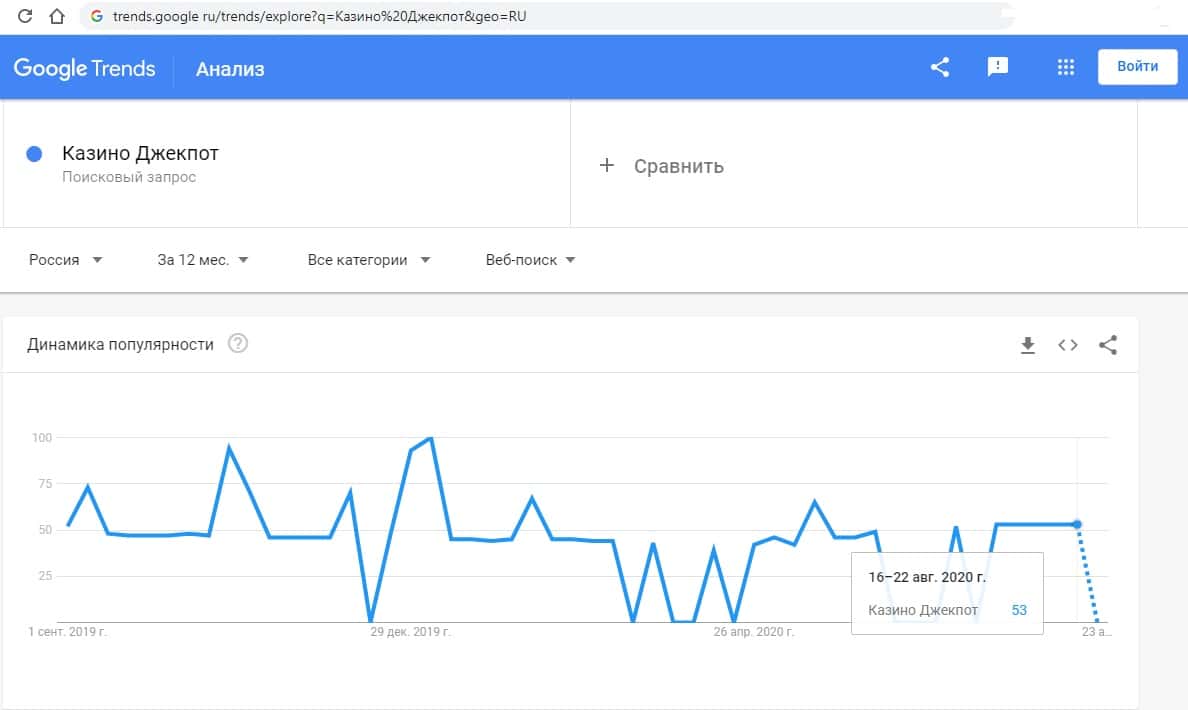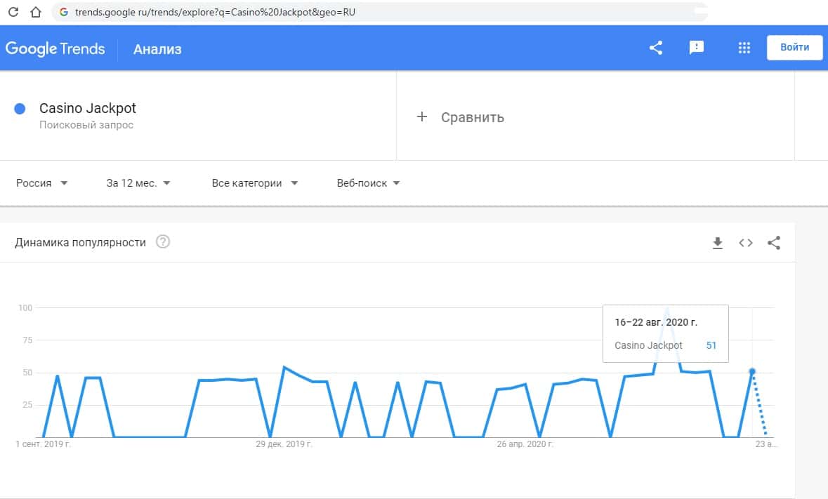 - Какое количество запросов по конторе Казино Джекпот в Google?