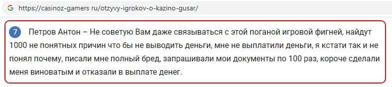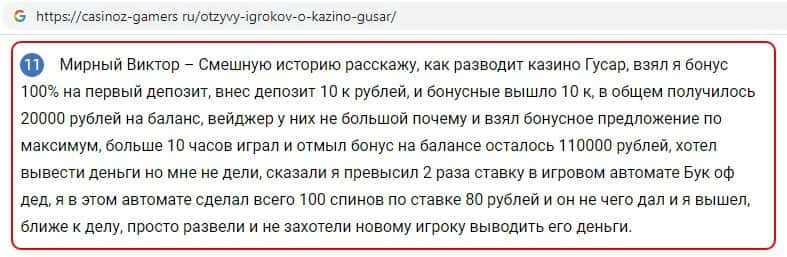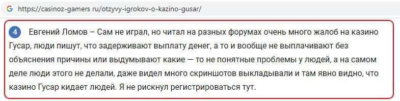 - Отзывы о мошеннической организации Казино Гусар, ныне присутствующие в сети