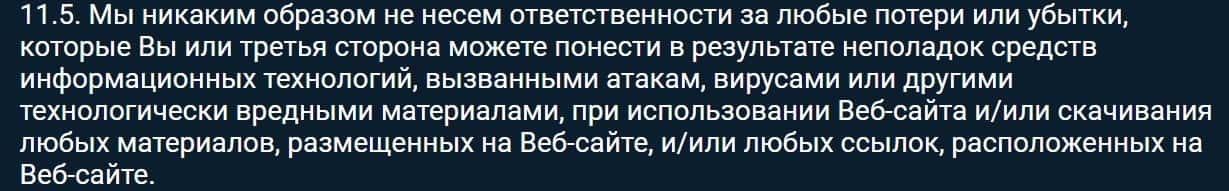 Согласно тому, что аферисты пишут в соглашении, скам-компания Game Gusar не несет никакой ответственности за не полученную прибыль клиентом, а так же за возможные убытки.
