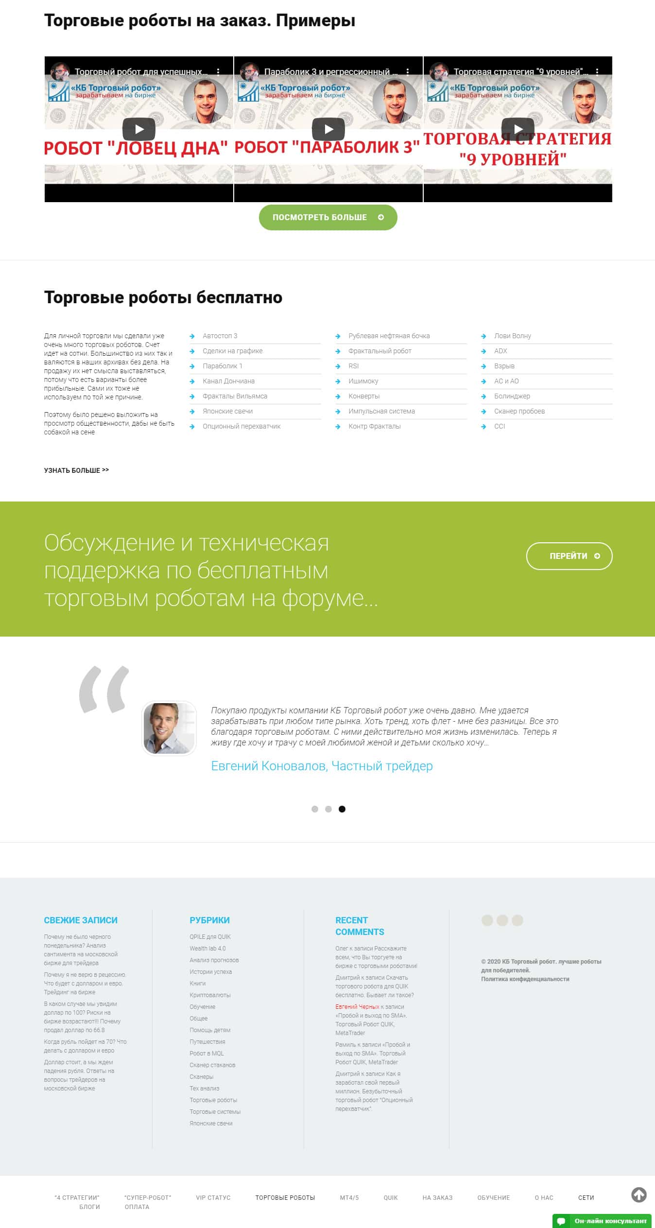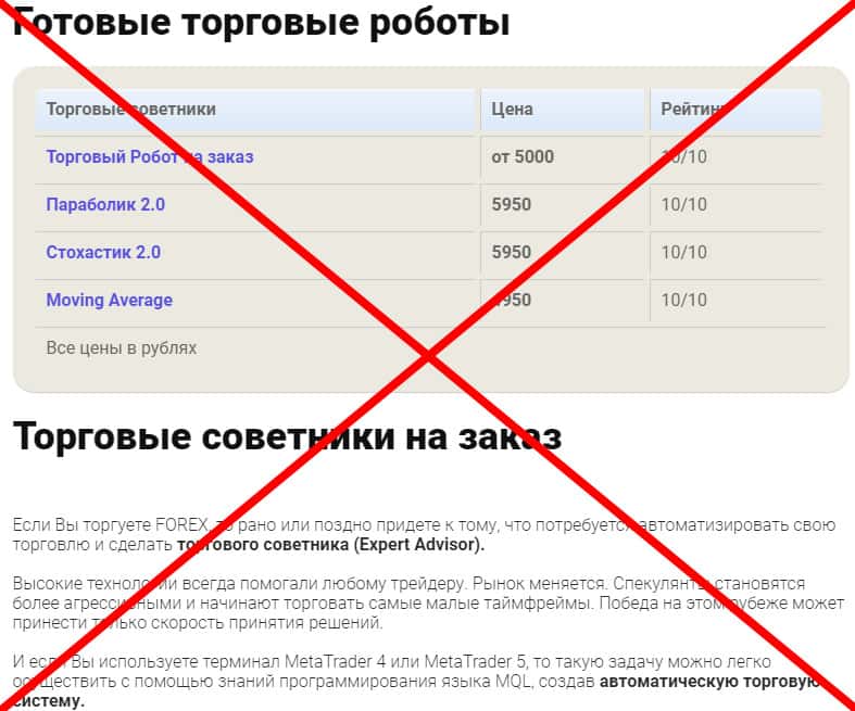 Далее представлен скриншот с сайта лохотрона KBRobot, где аферисты используют свои мошеннические навыки и клепают как можно больше роботов на заказ. В любом случае клиент сольет все деньги, но разработчики того же робота получат определенную прибыль. Так что не ведитесь на их благие намерения.