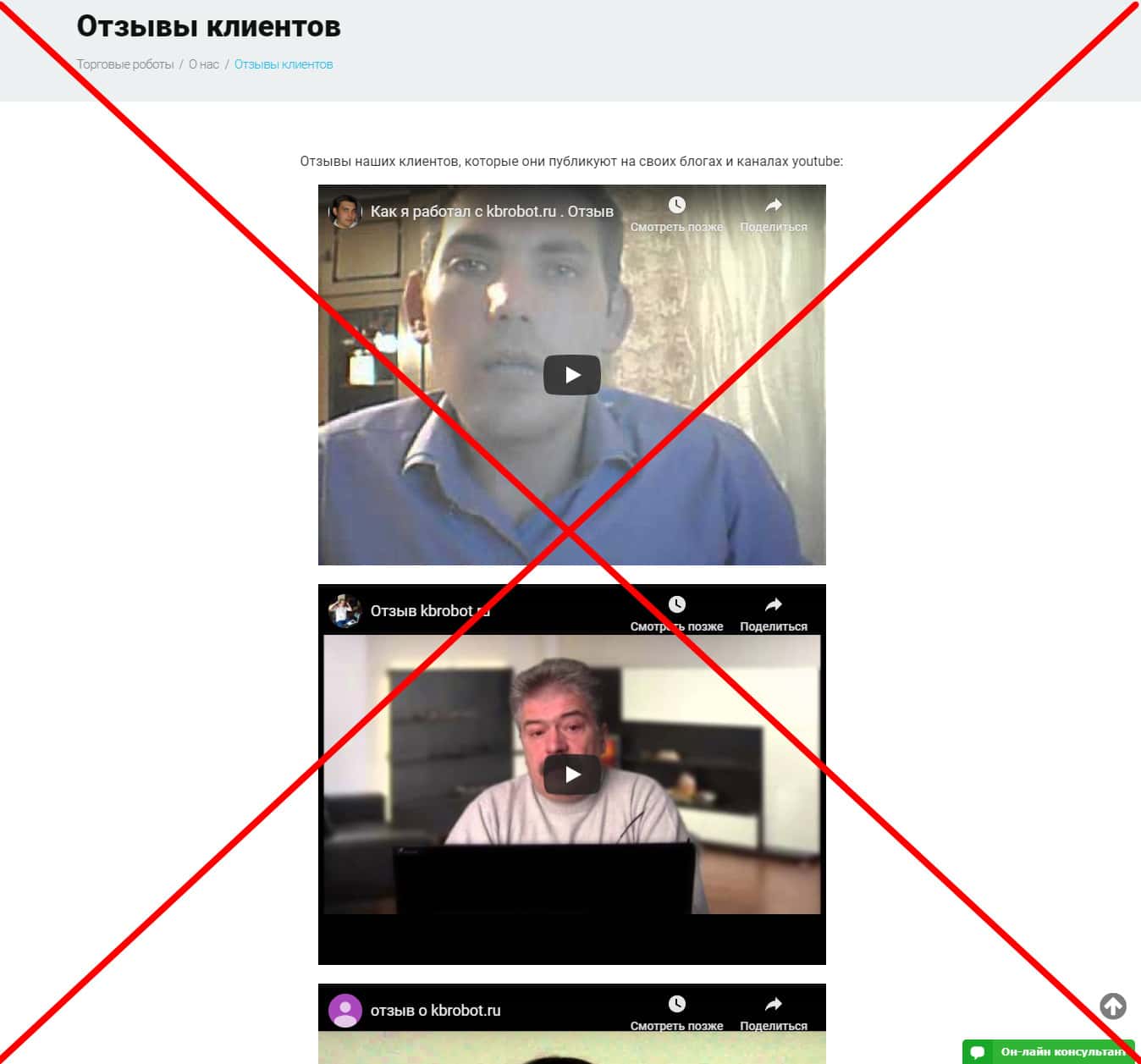 Чтобы в сказку жулья KBRobot поверило как можно больше клиентов, они решили записать видео-отзывы от якобы своих реальных клиентов, которые типа приобрели торгового робота и уже разбогатели. Конечно же это уловка для лохов и вестись на эти фейки себе дороже. Хотя многие уже купились на этот развод.