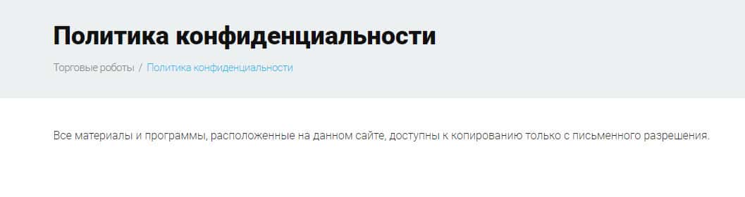 В политике конфиденциальности, которое предложила кухня KBRobot, нет ничего такого, чтобы защищало именно клиента, да и вообще все описано одной строчкой. Таким образом шулера указывают, что все их права защищены. Что качается личных данных клиентов, так здесь может пойти 100-процентная утечка.