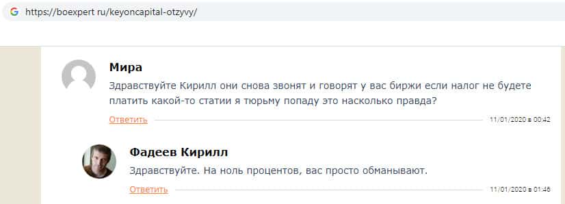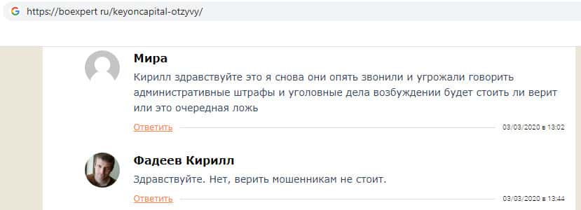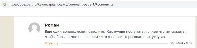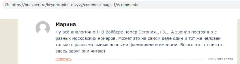 - Жулики KeyONCapital достают пользователя звонками