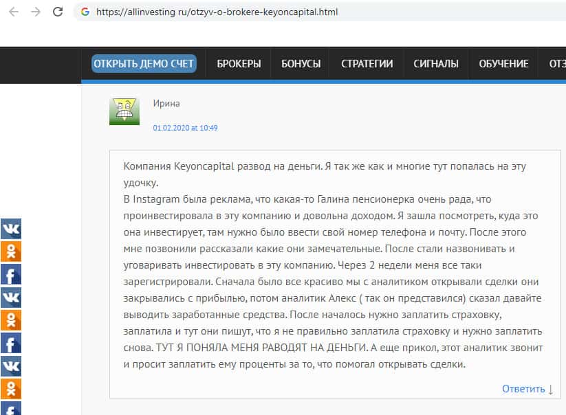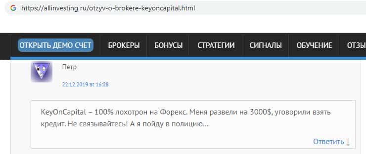 - Вердикт сайта allinvesting ru о конторе мошенников KeyONCapital