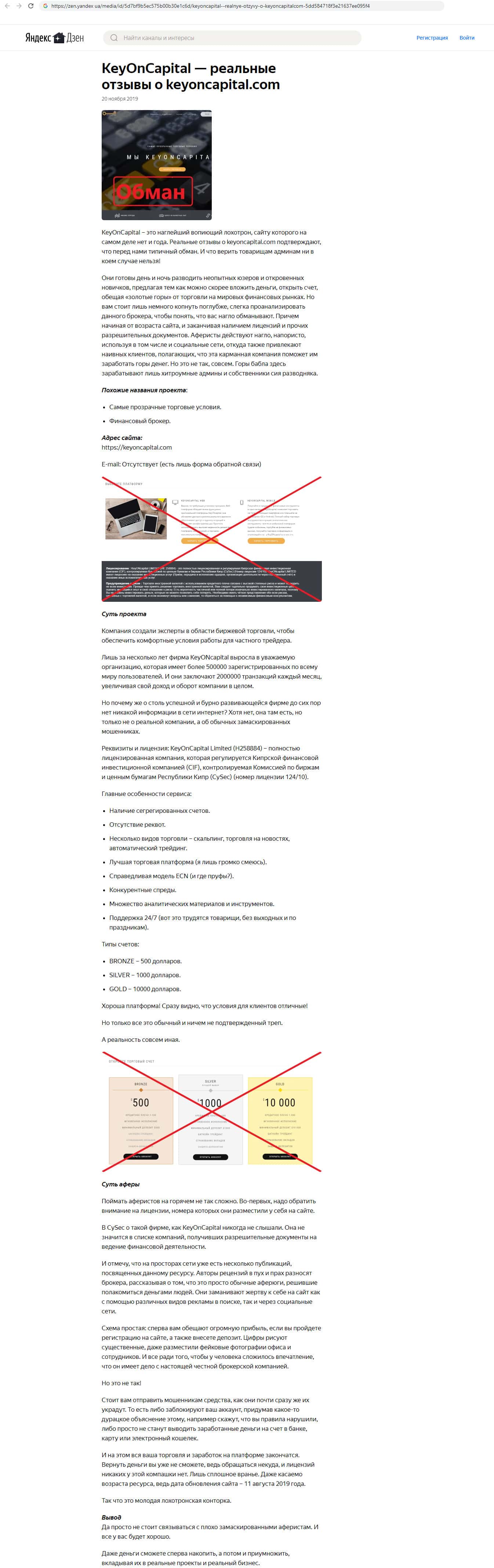 Интернет ресурс zen.yandex ua выразился в адрес аферистов KeyONCapital