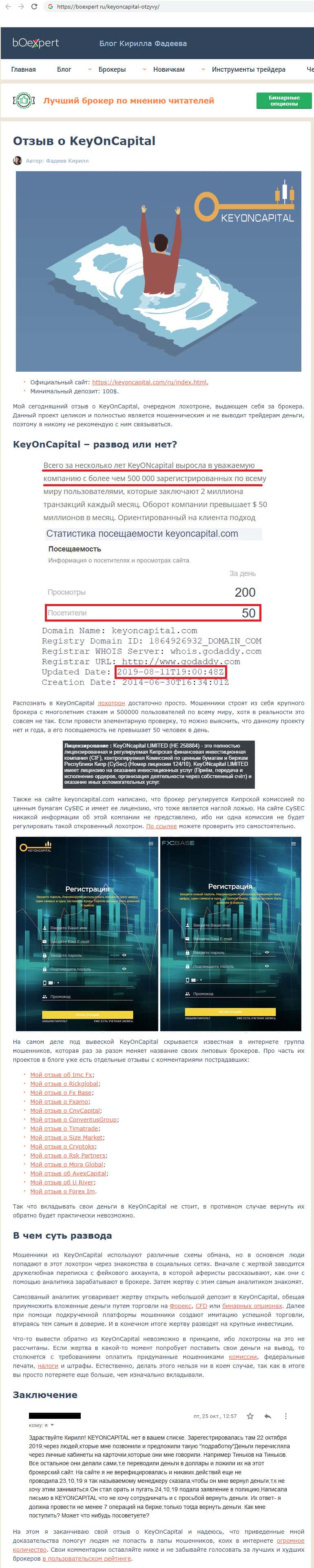 boexpert ru - сайт с информацией о разводилах KeyONCapital