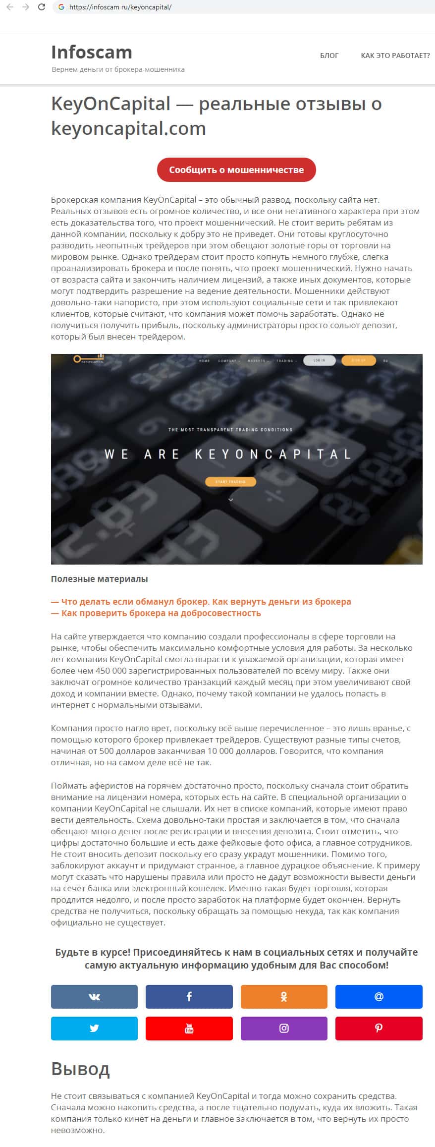Ссылки на источники информации, которые использовались для написания статьи о кидалах KeyONCapital