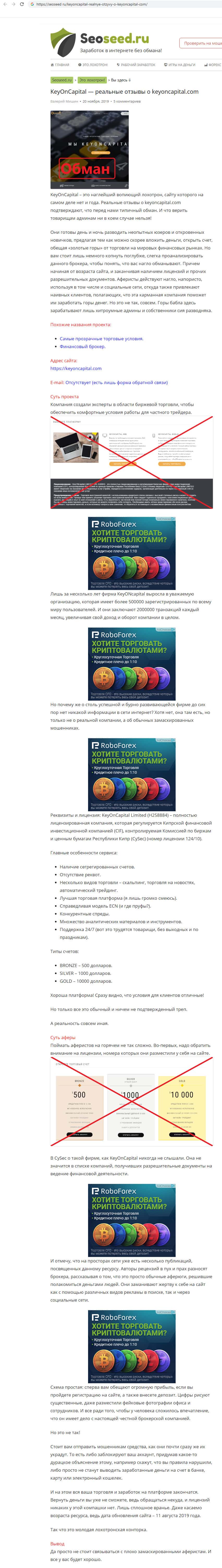 seoseed ru - статья о аферистах Кей ОН Капитал KeyONCapital