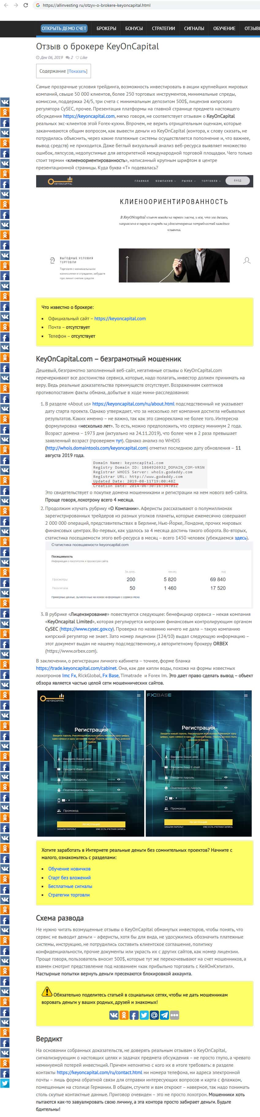 Вердикт сайта allinvesting ru о конторе мошенников KeyONCapital