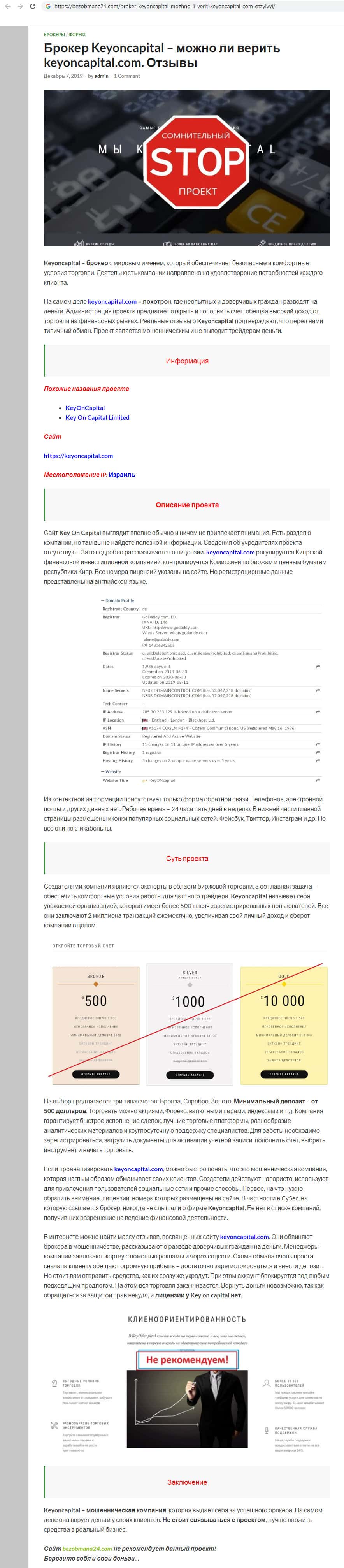 bezobmana24 com - интернет ресурс с информацией о жуликах KeyONCapital