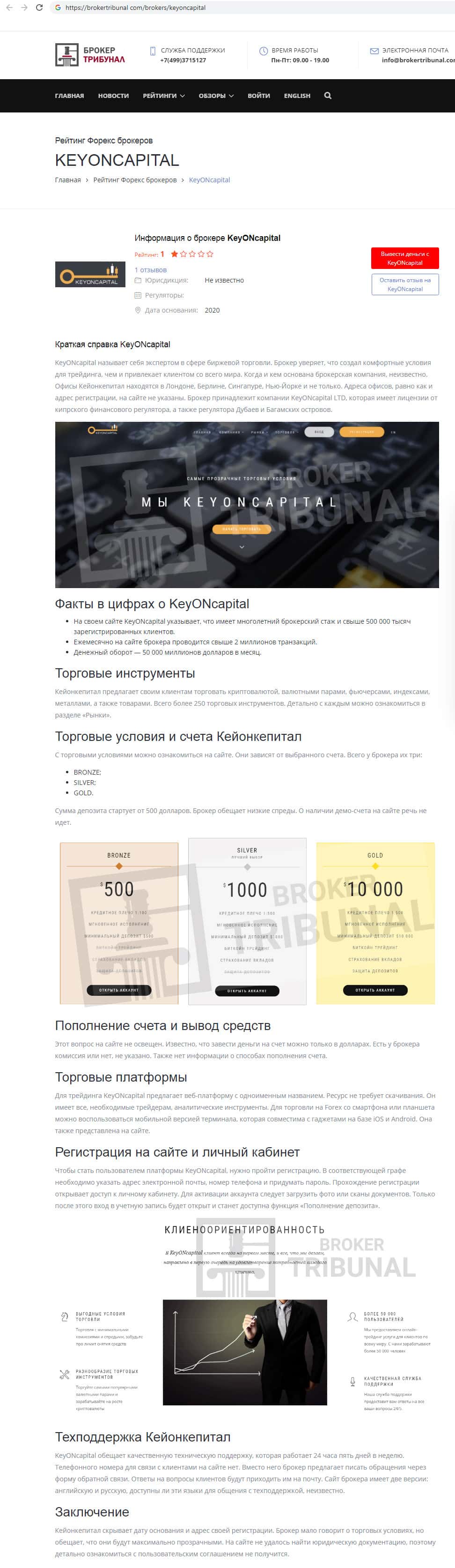 - Сайт brokertribunal com поставил лохотронщикам KeyONCapital самую низкую оценку