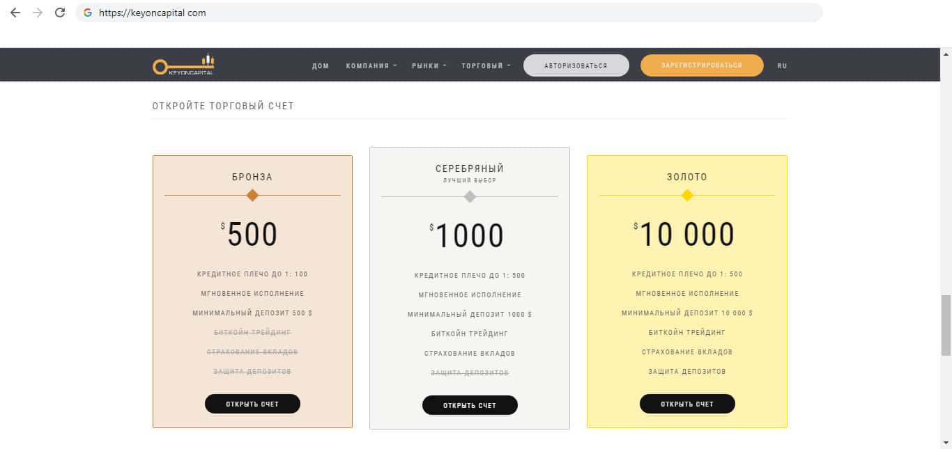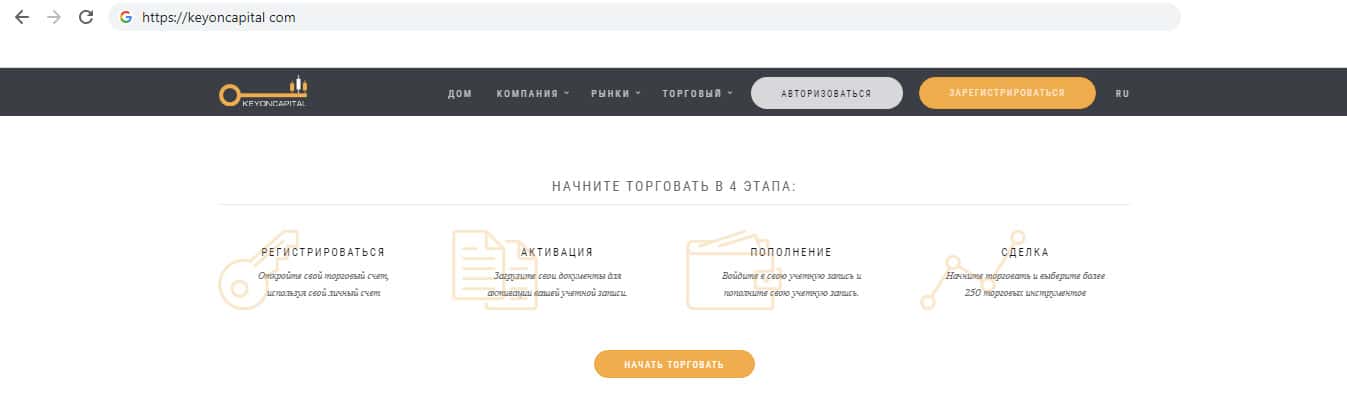 - Платформа компании мошенников KeyONCapital