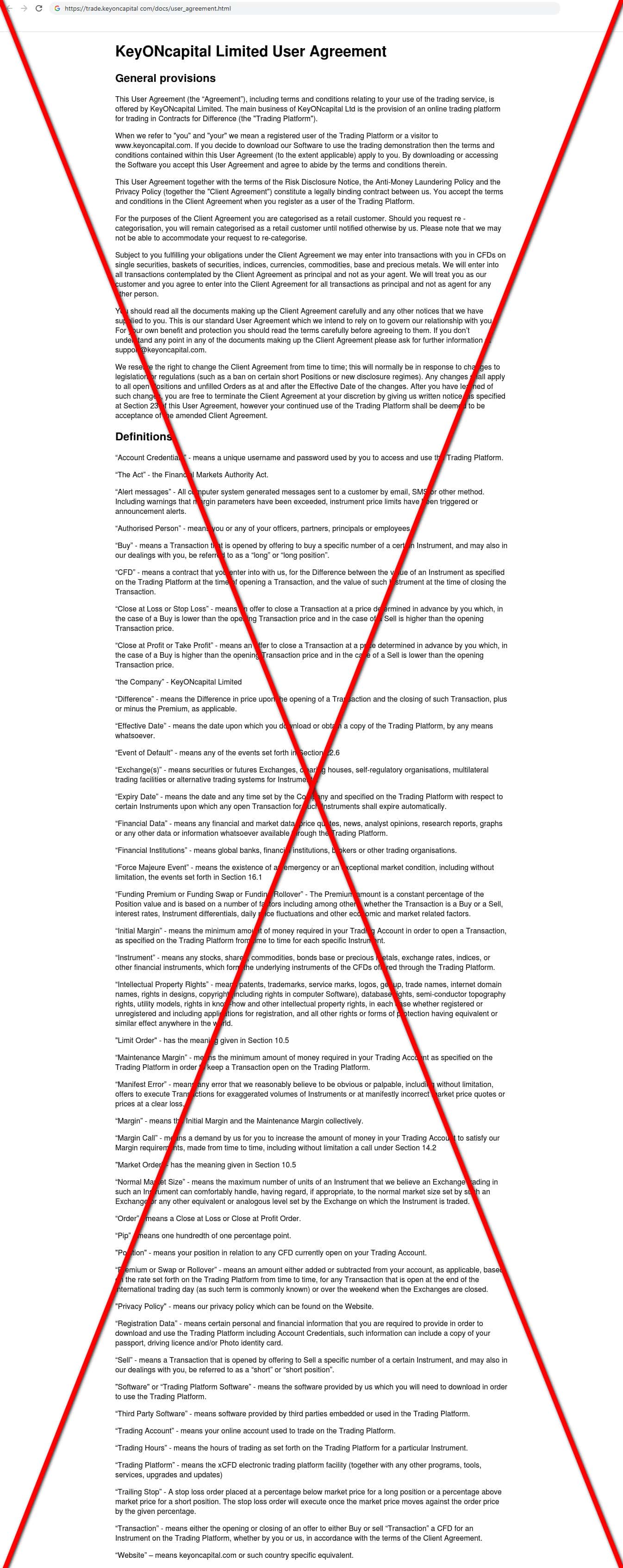 - Псевдоброкер KeyONCapital предоставил липовое пользовательское соглашение
