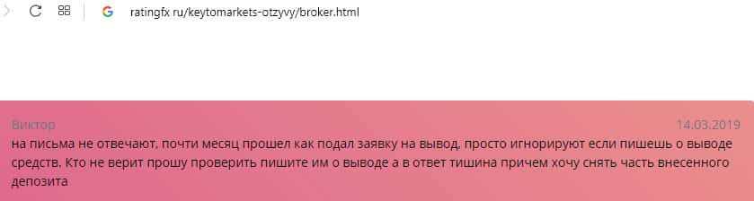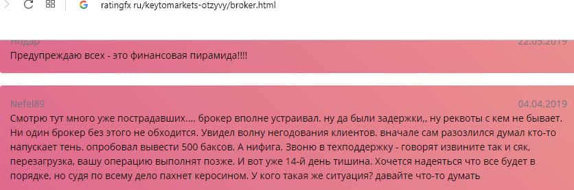 - Автор вышеуказанного материала о мошеннической деятельности брокера Key To Markets