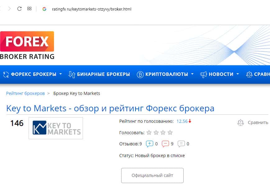- Авторитетный интернет-портал показал низкий рейтинг Кей То Маркетс в общем списке брокеров