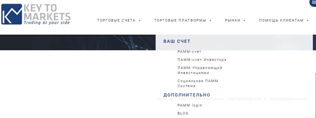 Двигаясь по сайту, далее можно попасть в широчайший спектр торговых счетов и платформ, помощи в открытии счетов на форексовом рынке, при помощи каких эти ворюги пытаются заманить клиентов в свой махинаторский водоворот. На скриншоте, изображенном ниже, Вы можете увидеть еще один раздел ресурса Кей То Маркетс.