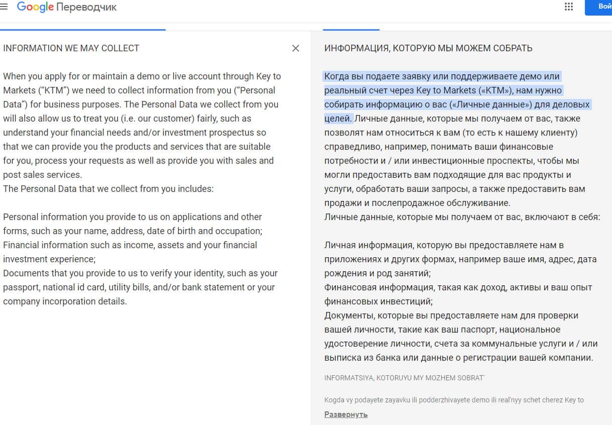 Политика конфиденциальности афериста-брокера Кей То Маркетс