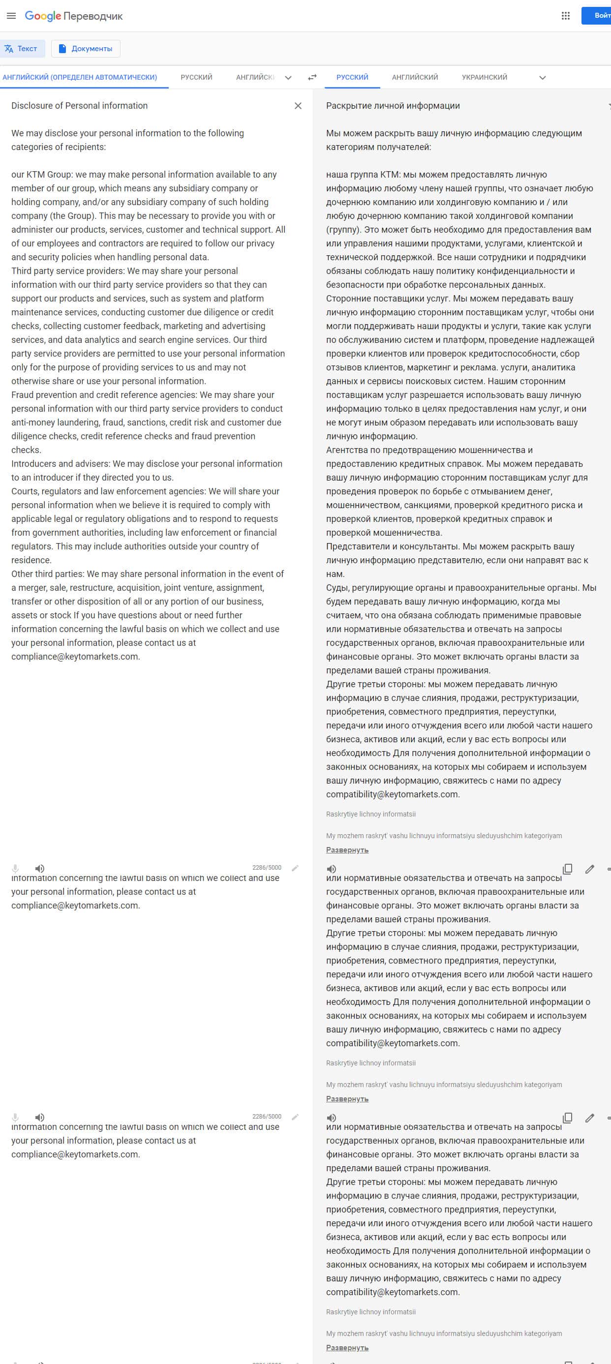 А далее в политике конфиденциальности следует раздел о раскрытии личной информации, который просто ужасает. Эти грабители из Кей То Маркетс по собственному усмотрению, совершенно не учитывая Ваши личные интересы, могу слить Ваши личные данные всем кому угодно: от дочерних компаний (левых) до различных инстанций.