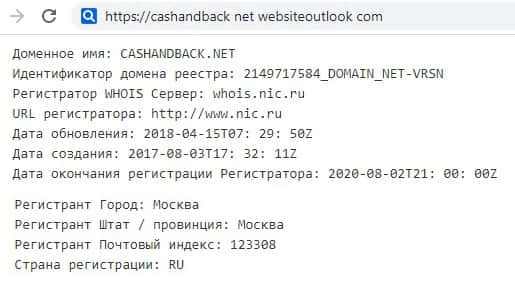 К сожалению, на официальном интернет-ресурсе мошеннической хайп-организации CashAndBack Net никаких сведений о месте регистрации и местоположении этой конторы не представлено. Эти сведения удалось найти только на информационно-аналитическом интернет-портале websiteoutlook com. Эта хайп-площадка находится в Российской Федерации в городе Москве.