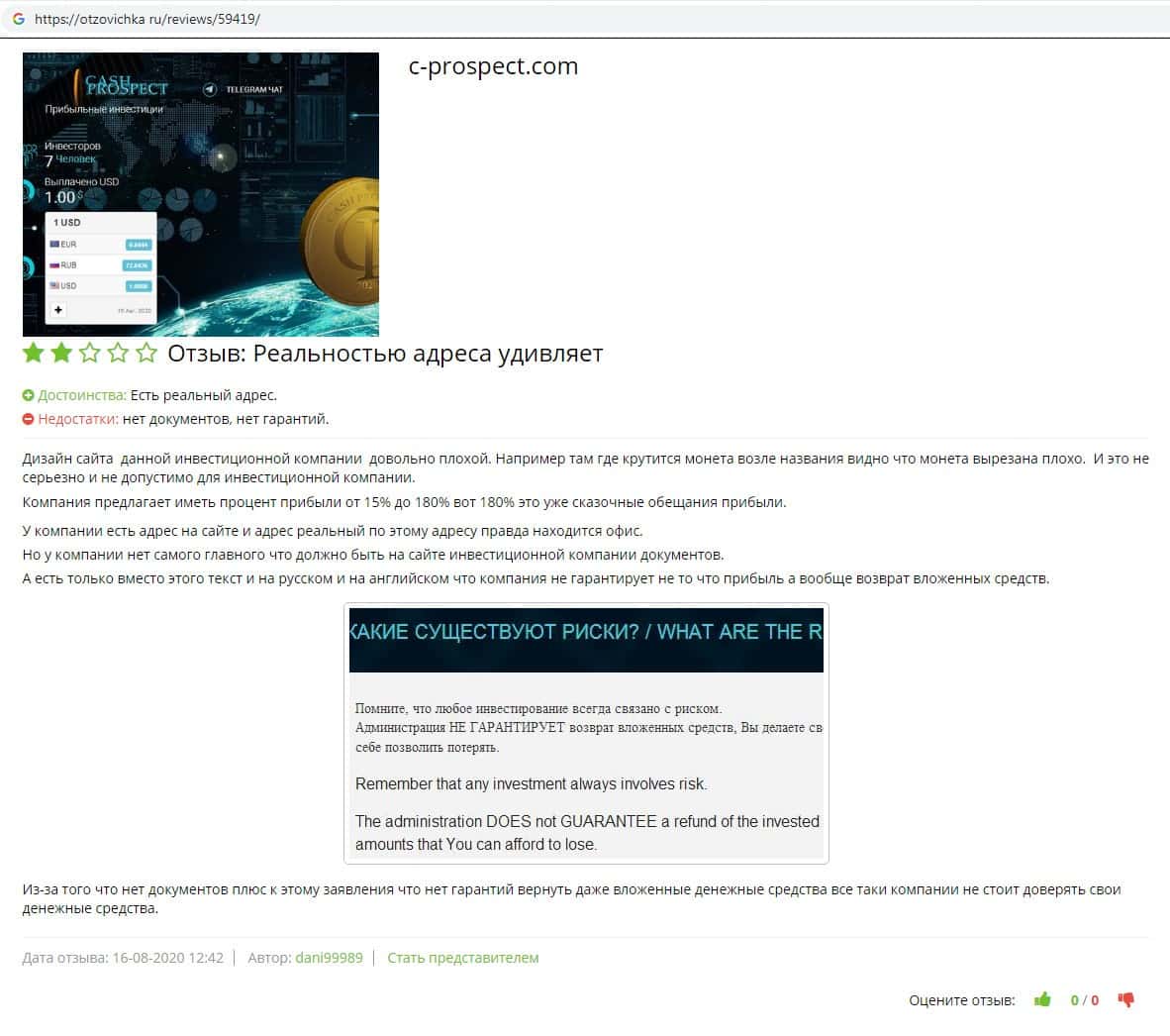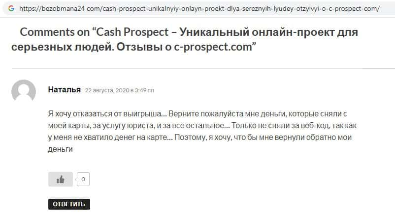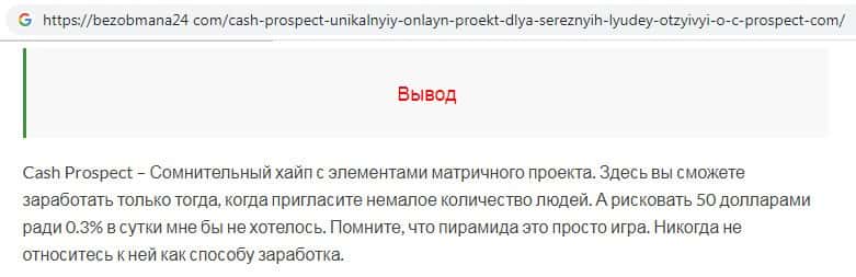 - Cash Prospect - обзоры скам-проекта на других интернет-ресурсах