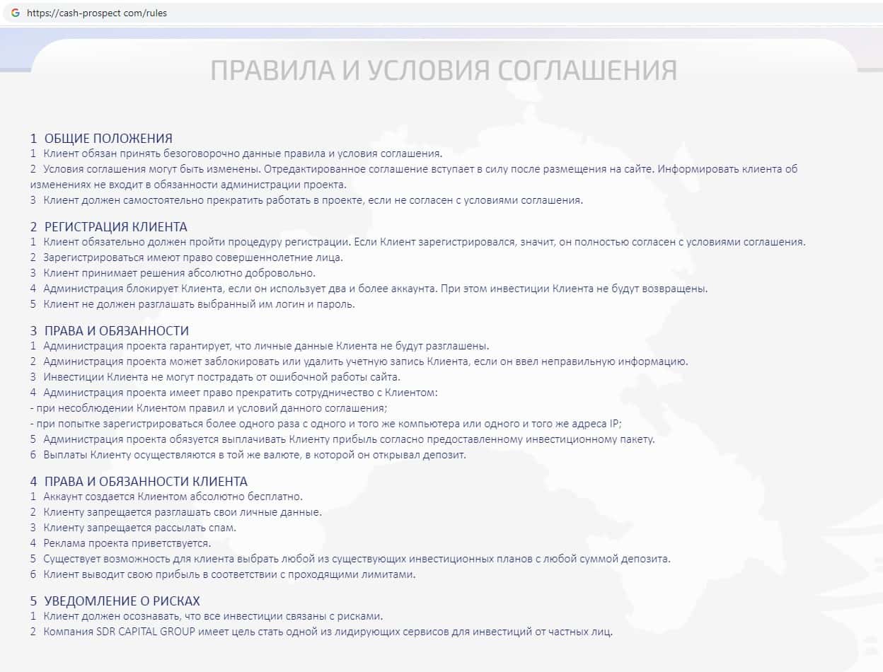 Клиентское соглашение инвест-лохотрона Cash Prospect