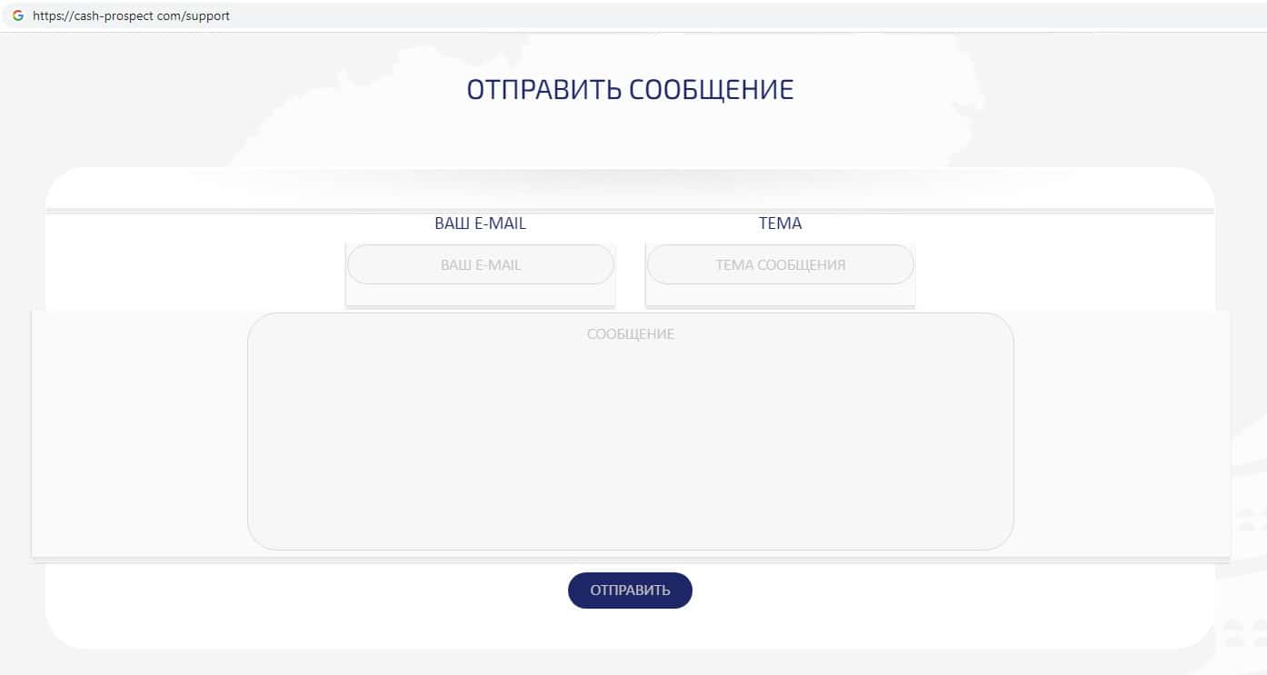 Жулики Cash Prospect ведут сбор данных о посетителях своего дырявого сайта, просят указать свой адрес электронной почты в качестве обратной связи.