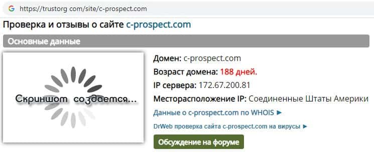 Проверка интернет-сервиса мошенников Cash Prospect на trustorg com показала, что возраст домена к моменту написания статьи составляет 188 дней.