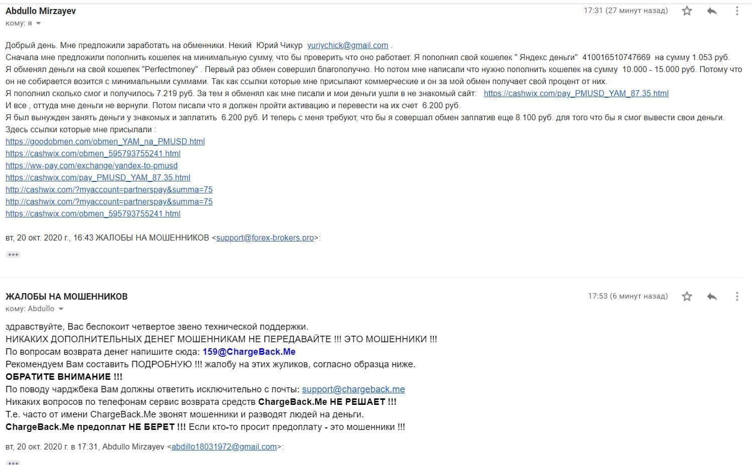 Мужчина написал жалобу про обменный сервис CashWix. Он перечислил туда средства, которые не смог вернуть назад. Аферисты использовали также сервисы WW Pay и Гуд Обмен.