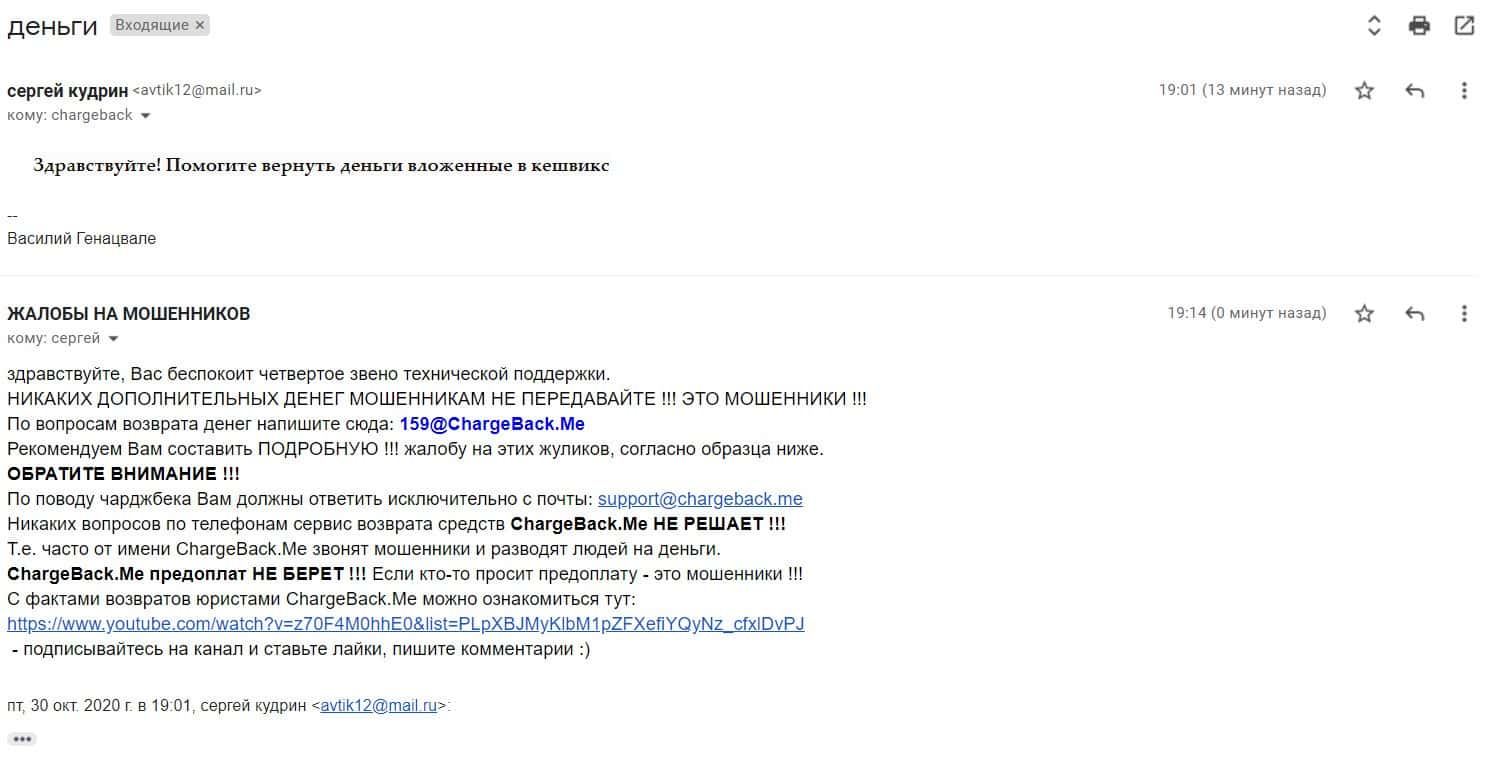 Что касается попыток получить свои вложенные деньги от МОШЕННИКОВ Кэш Викс - напишите письмо на мыло: [email protected]