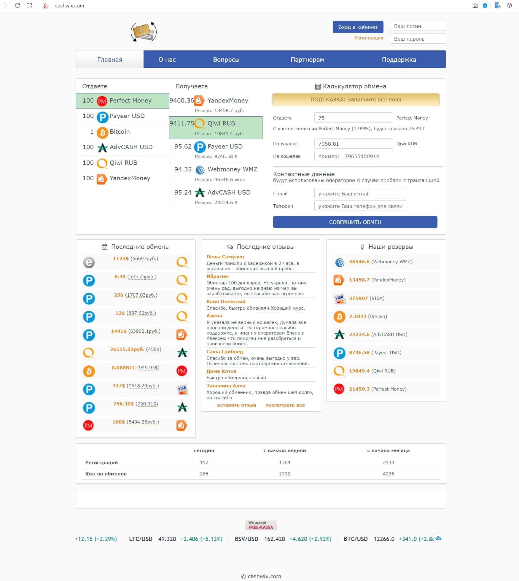 Сайт обменного сервиса Кэш Викс сделан по тем же шаблонам, что и другие подобные ему ресурсы. Ничего особенного, все достаточно просто.