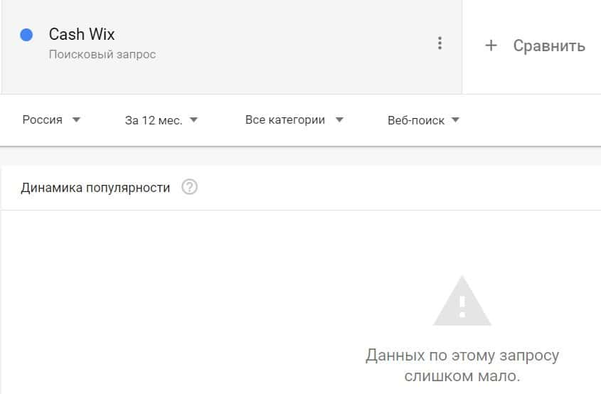 Проверка по названию бренда на английском языке с пробелом "Cash Wix" дала следующий результат: компанию искали крайне редко.