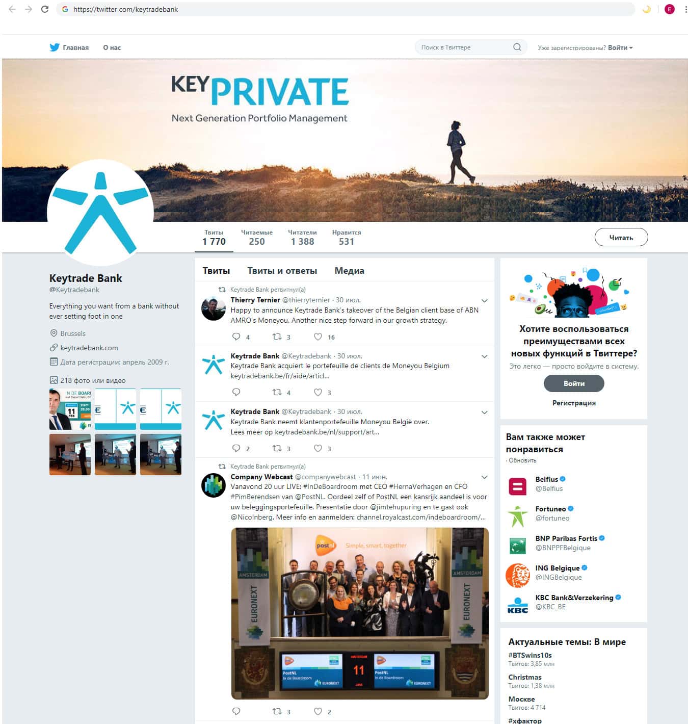 Мошенники, называющие себя такими громкими словами как "инвестиционный сайт, лидер торговли онлайн" - пытаются заполучить клиентов в социальных сетях. Таким образом компания создала профиль в твитере, который не пользуется особой популярностью. Такая "огромная" международная компания сумела привлечь почти 1500 человек.